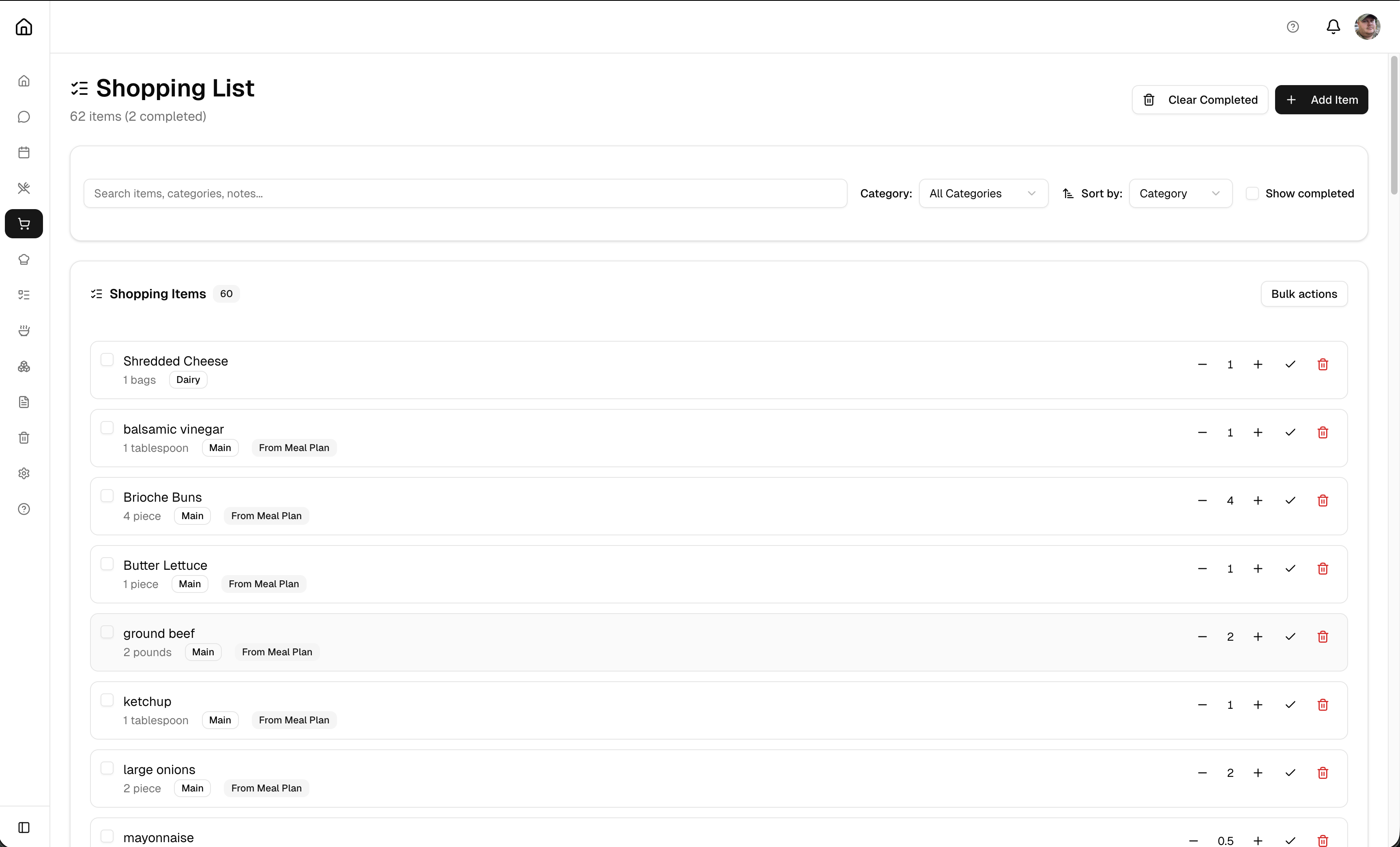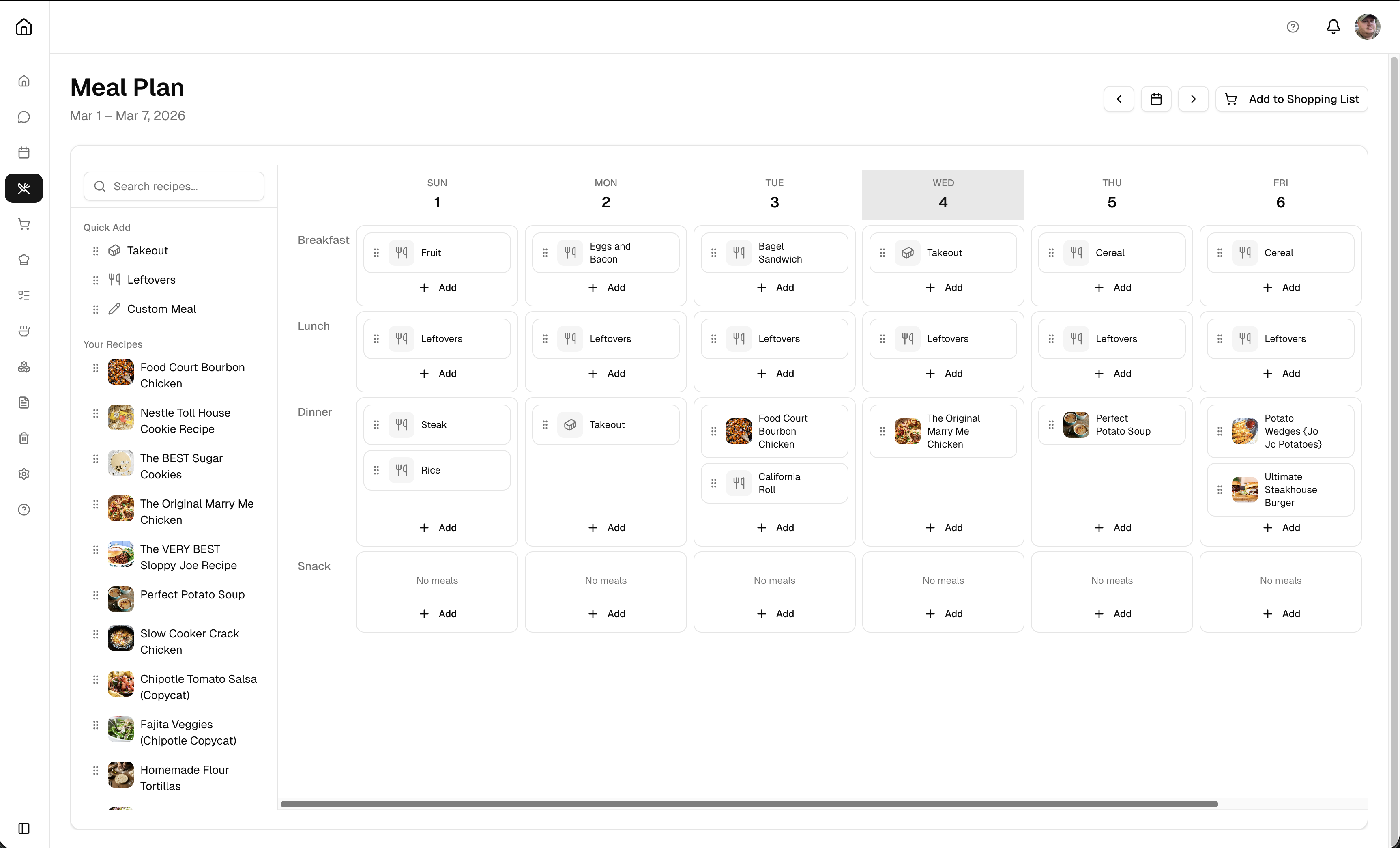 - Auto-generate shopping lists