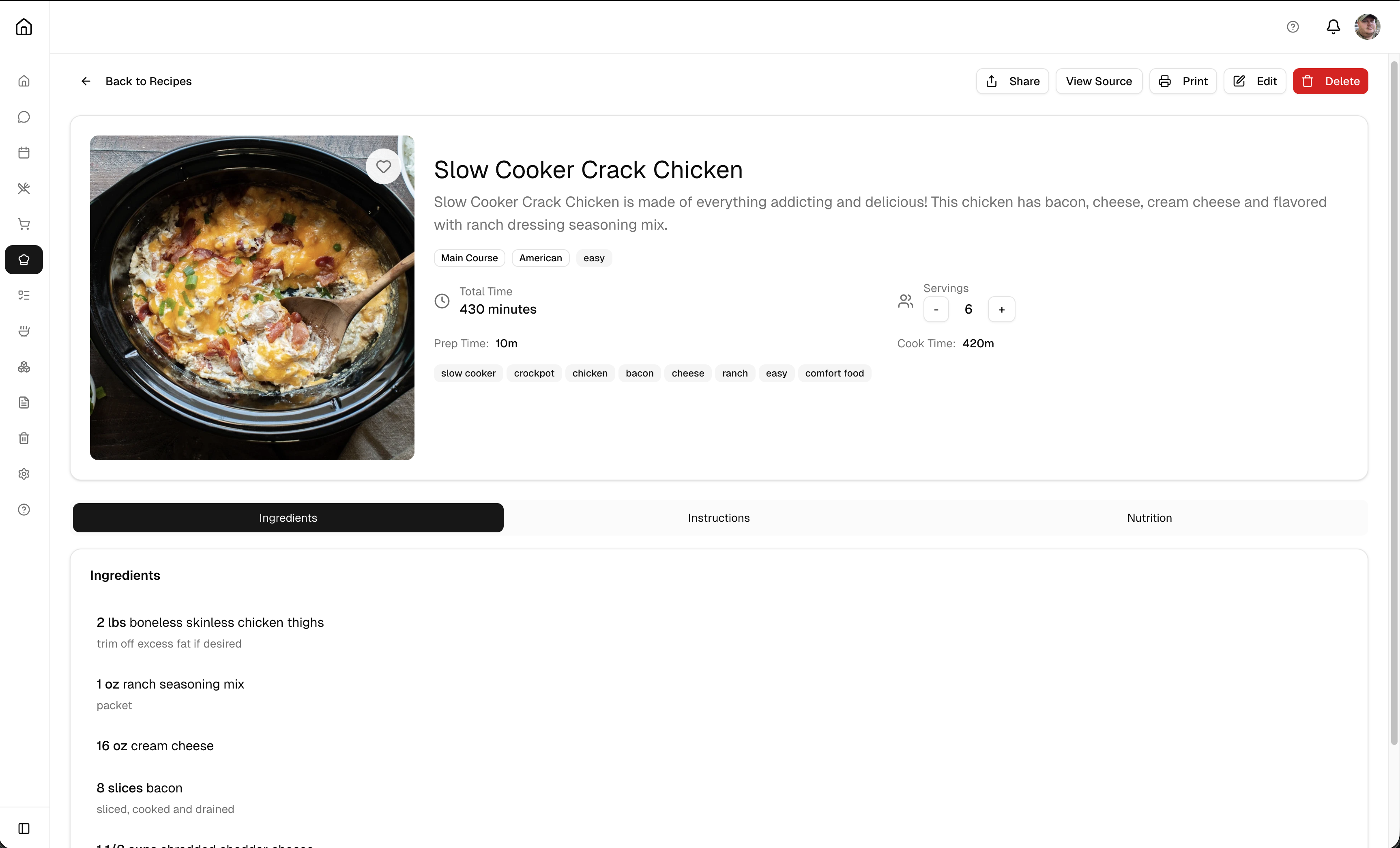 - Scale servings automatically